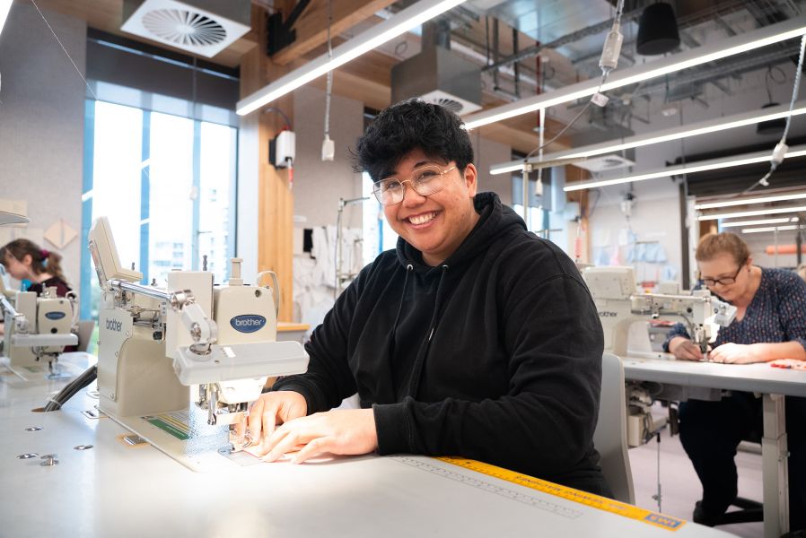 - How to use industrial sewing machines, including straight stitch and overlockers.